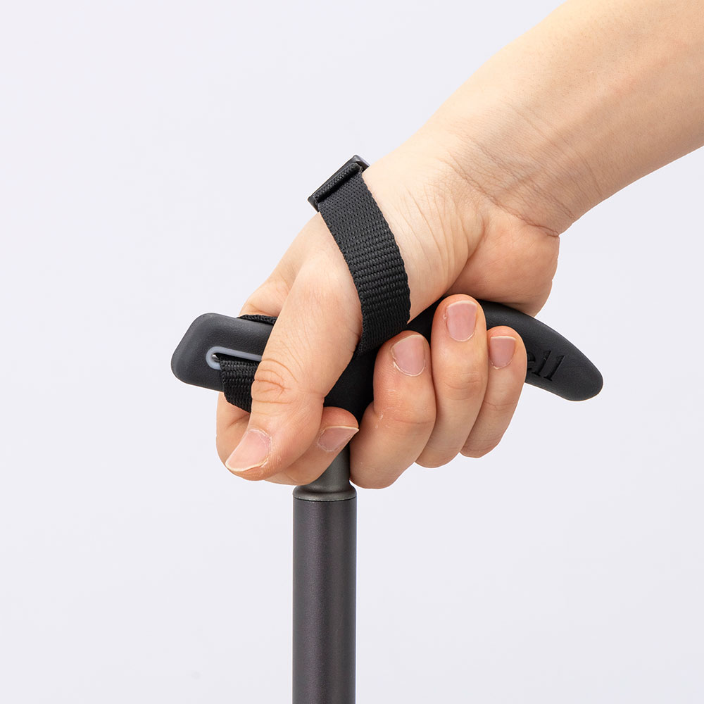 グリップの上から手のひらを載せることで体重をかけやすいタイプです。比較的緩やかなコースを歩く際に適し、初心者でも簡単に扱うことができるという特長があります。平坦地で、身長の2分の1が目安の長さとなります。