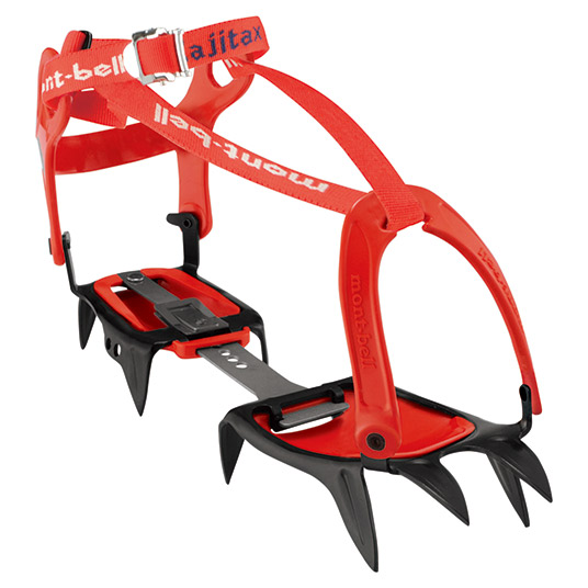 冬季の縦走に最適な、10本爪の軽量なアイゼン。サイズの小さな登山靴にもよくフィットします。樹脂製ハーネスとナイロンテープで固定する方式。コバのない靴にも取り付け可能。