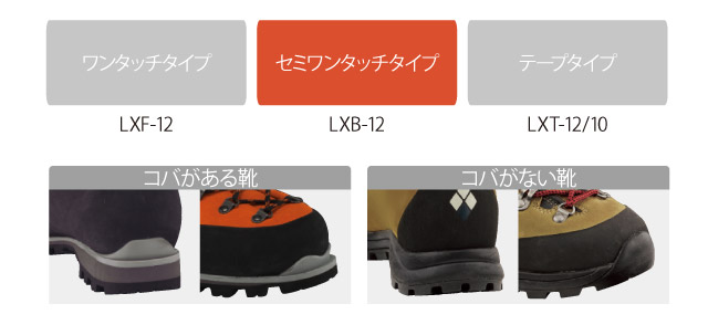 ※少なくとも後部にコバのある登山靴に対応します。