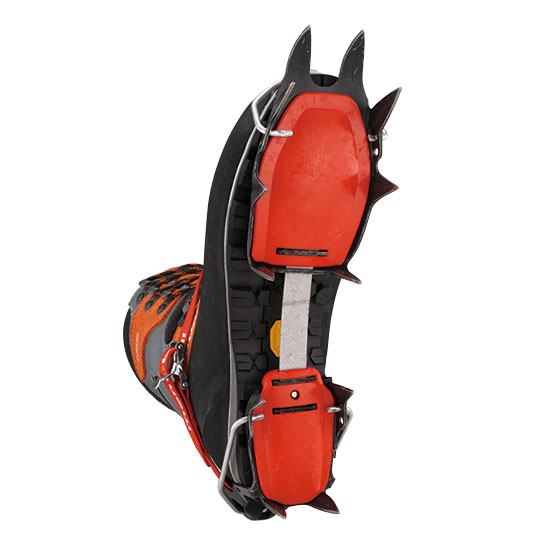冬季の縦走からアルパインクライミングまで、幅広く対応する12本爪のワンタッチアイゼンです。つま先部分を固定するトゥベイルと、かかと部分のアジャスター付きビンディングにより、スピーディーな着脱と抜群の安定性を実現しています。前後を金具とレバーで固定する方式。しっかりとしたコバが出ている靴にのみ取り付け可能。強い力で固定されるため、冬山縦走やアルパインクライミングに適しています。