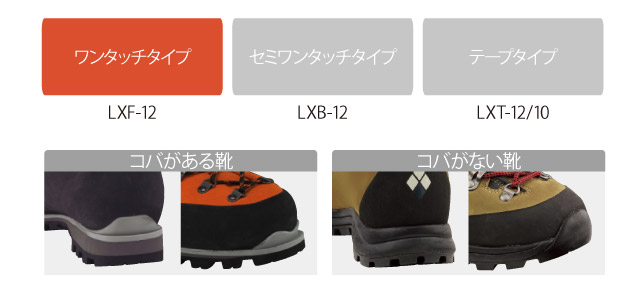 「LXB-12アイゼン」はつま先部分のみに樹脂製ハーネスを使用しています。