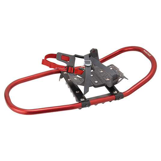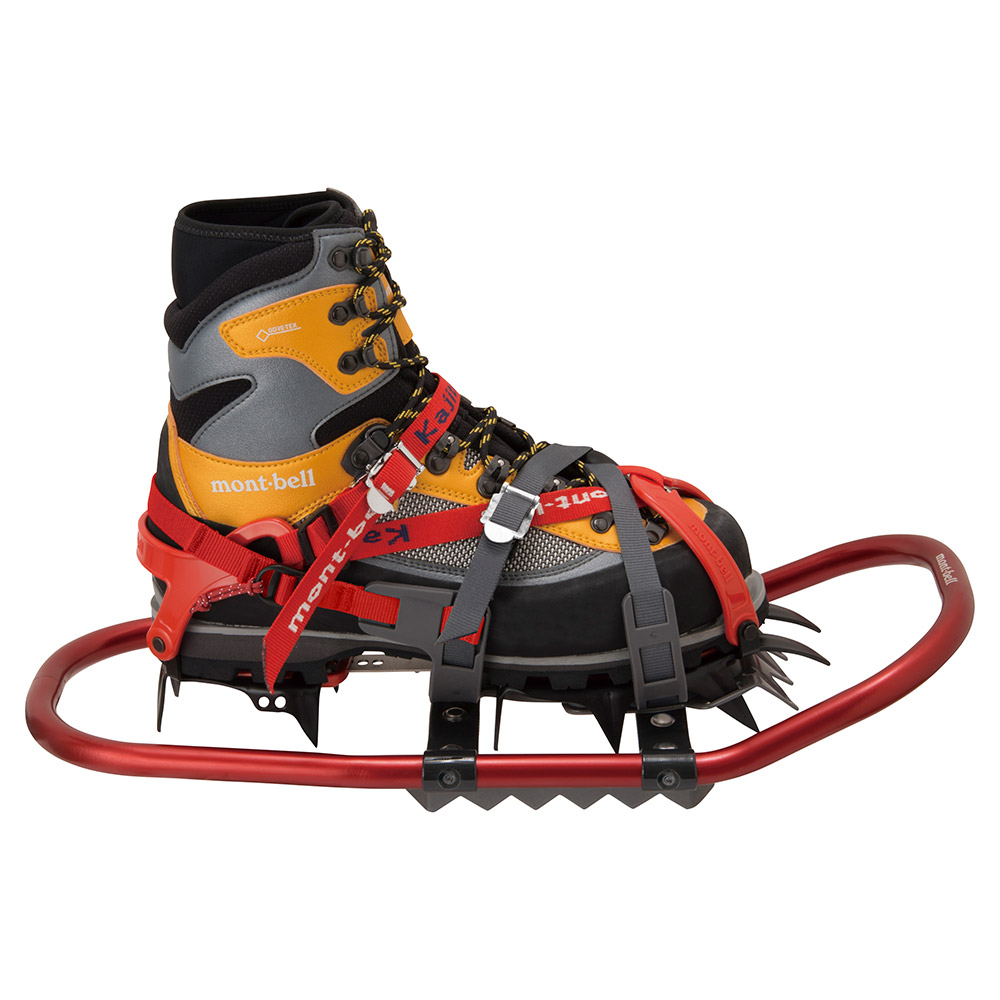 【特長】アイゼンを着用したまま装着できるデッキ付きモデル/重ねてコンパクトに携行可