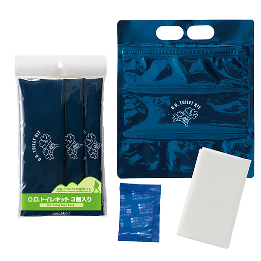 アウトドアフィールドや災害時の使用に適した軽量コンパクトな携帯トイレです。「O.D.トイレキット」3個入り。