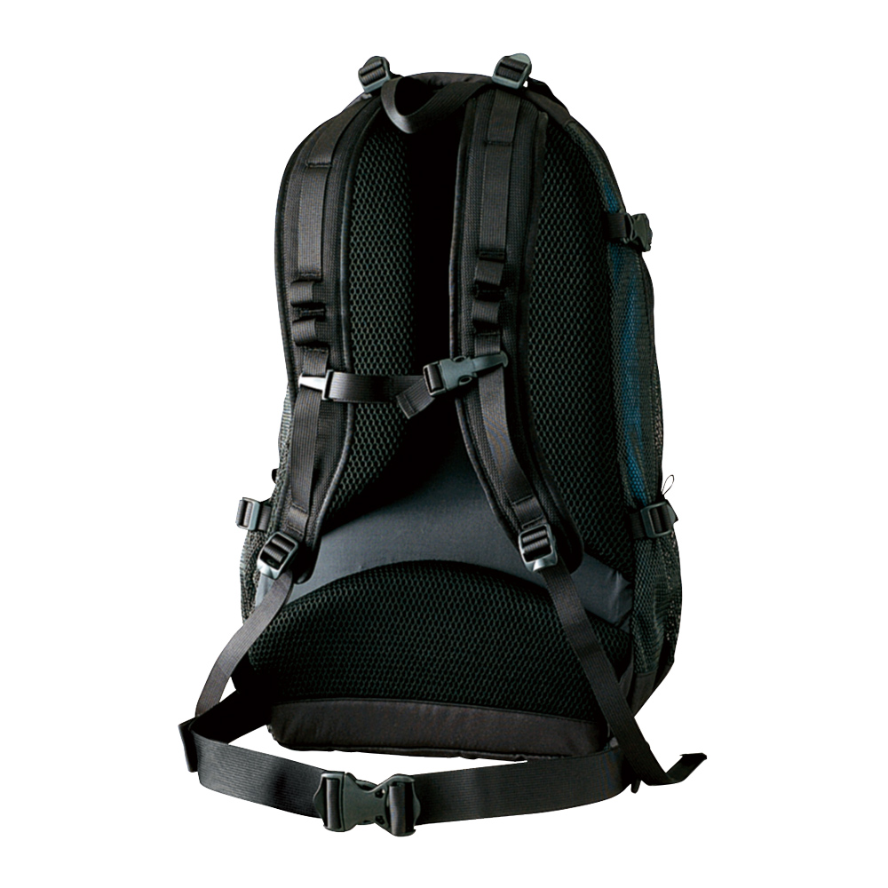 「ライトドライバッグ」などの防水バッグと併用し、沢登りなどさまざまなウォータースポーツで使用できるメッシュパックです。S字ショルダーハーネスや、蒸れを軽減するためパッドに空間を設けた背面構造など、快適に背負うための本格機能が搭載されています。ともに3Dメッシュ地を使用し、水に濡れても保水せず常に軽量感を保てるようにしました。底部には水抜きメッシュを配しています。ショルダーハーネスにパッドを入れて肩への負担を軽減し、背面にプラスチックパネルを挿入してより快適な背負い心地を追求しています。