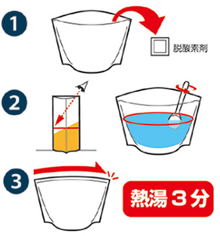 ③チャックをしっかり閉めた後、3分待てばできあがりです。