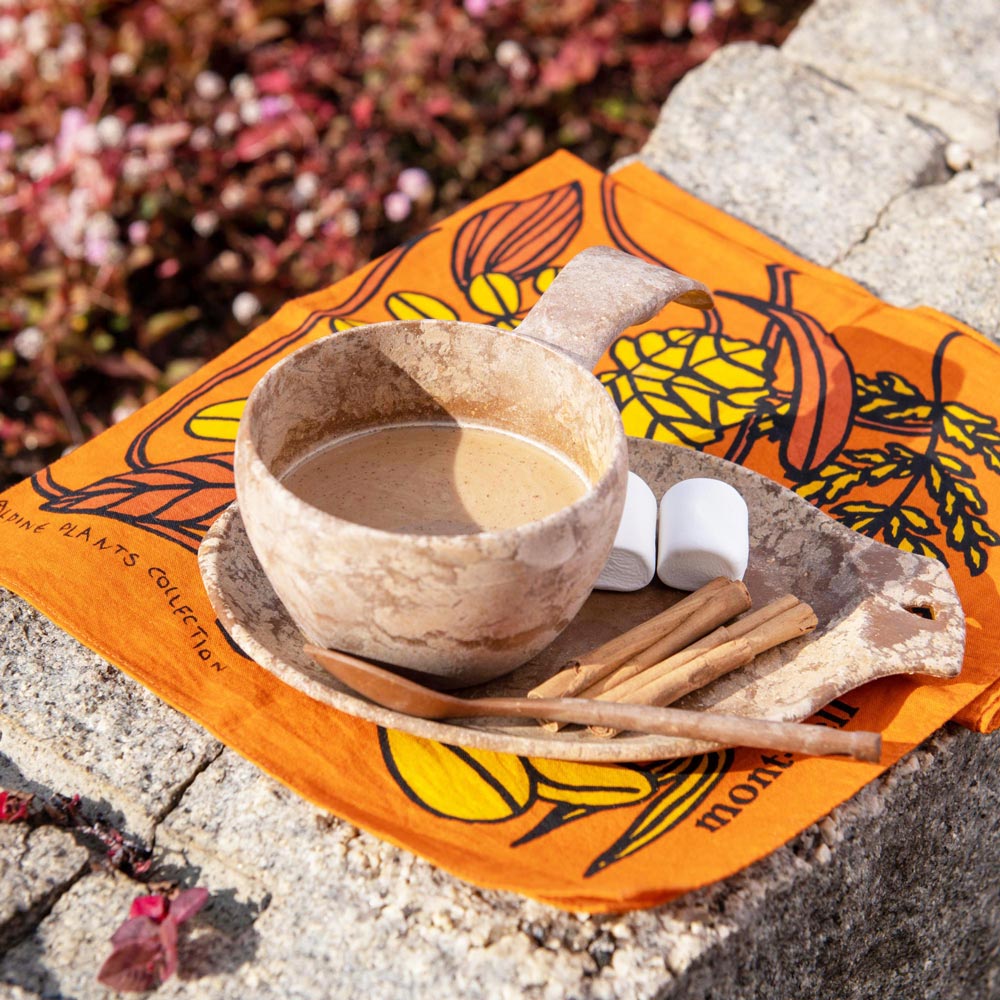 モンベル直営店カフェのレシピを元にしたインスタントチャイです。アウトドアでも手軽に本格的なチャイを楽しめます。数種のスパイスの味わいが登山中のひと時や、キャンプでのリラックス時におすすめです。120mLのお湯に溶かして飲む粉末タイプです。