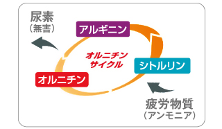 疲労物質のアンモニアを無害な尿素に解毒する「オルニチンサイクル」の働きを活性化させる
