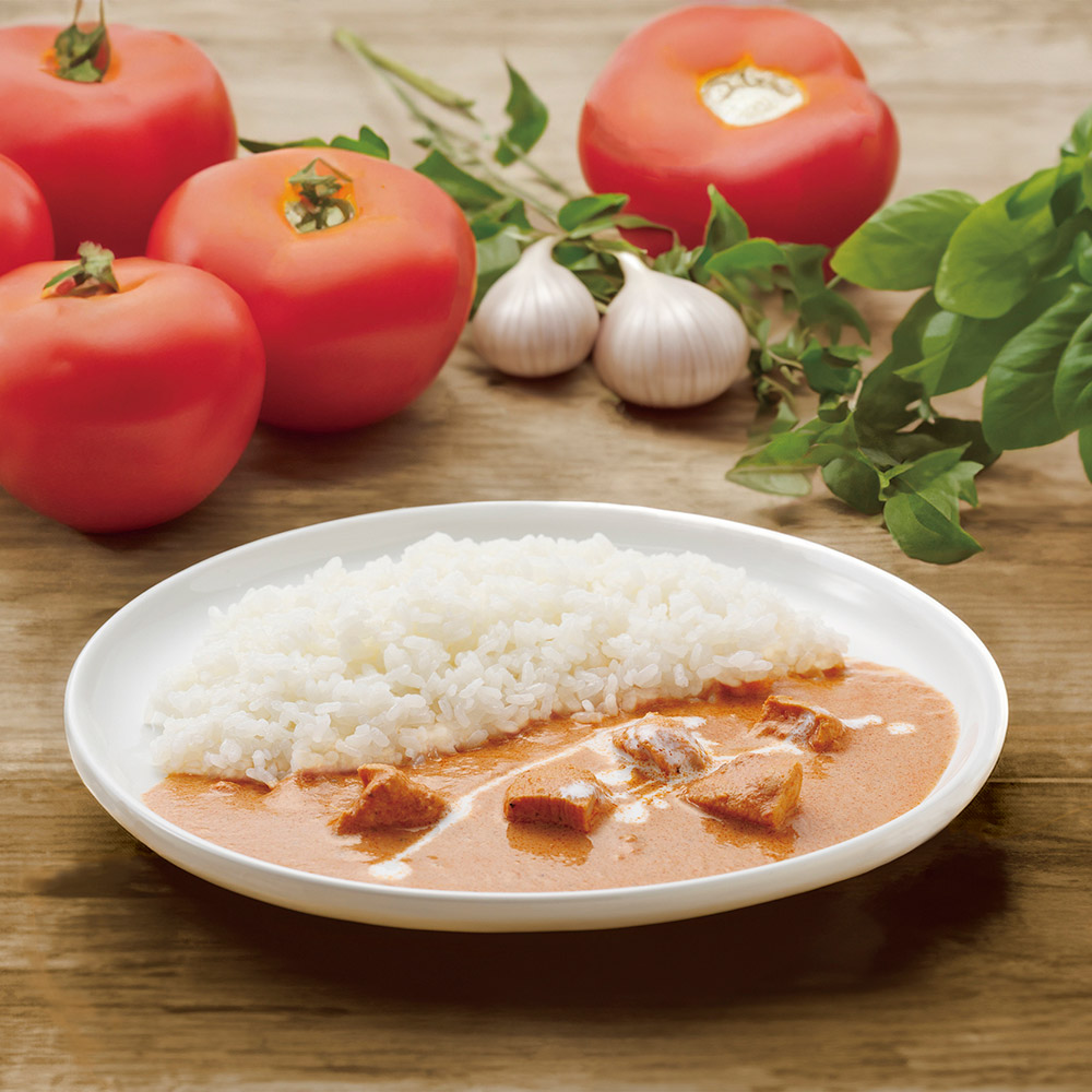 【素材】【原材料名】トマト・ピューレづけ(イタリア製造)、鶏肉、生クリーム、ヨーグルト、オニオンソテー、牛乳、なたね油、カシューナッツ、バター、生姜、にんにく、ココナッツファイン、食塩、砂糖、コーンスターチ、ひよこ豆粉、鶏ガラスープ、コリアンダー、ブラックペッパー、グリーンカルダモン、クミン、パプリカ、ベイリーフ、カスリメティ、メイスリーフ、クローブ、シナモン、ナツメグ、チリパウダー、ブラウンカルダモン、キャラウェイ、(一部に乳成分・カシューナッツ・大豆・鶏肉・豚肉を含む)