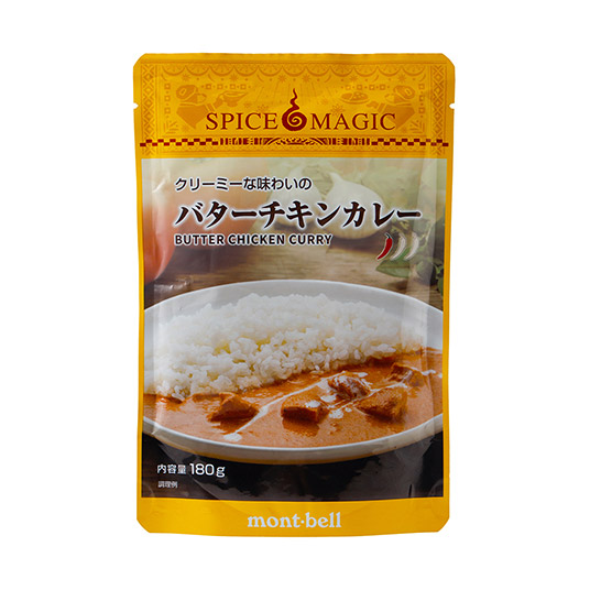 モンベル直営レストランのレシピをもとに15種類以上のスパイスを独自にブレンドしたオリジナル・レトルトカレーです。トマトベースに生クリームとカシューナッツを贅沢に使用した、南インドを代表するクリーミーでコクのあるカレーです。ふんわりと甘い香りとほろ苦い風味が特徴のハーブ「カスリメティ」で深みのある味わいに仕上げました。辛みが少ないため、お子さまもお召し上がりいただけます。国産の鶏肉を使用しています。小型のクッカーでも加熱しやすい縦長パウチ仕様。国内で製造しています。【辛さ:甘口】