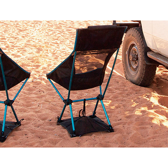 「サンセットチェア」の足に装着することで、砂地など柔らかい場所での沈み込みを防ぐシートです。