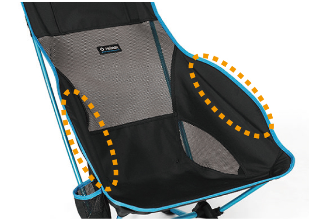 ゆったりくつろげる広い座面と、ひじ掛けにもなるシートのデザインが特徴のハイバックチェアです。軽量で簡単に組み立てられ、キャンプやバックパッキングで活躍します。ドリンクホルダー、スタッフバッグ付き。
