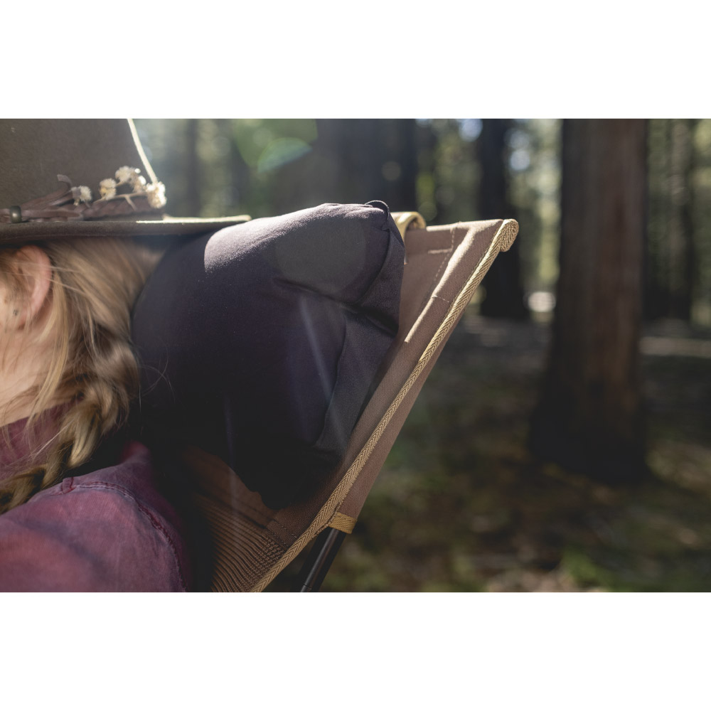 ハイバックタイプのチェアに取り付けられるベルクロ付きヘッドレストです。非常にコンパクトに収納できます。