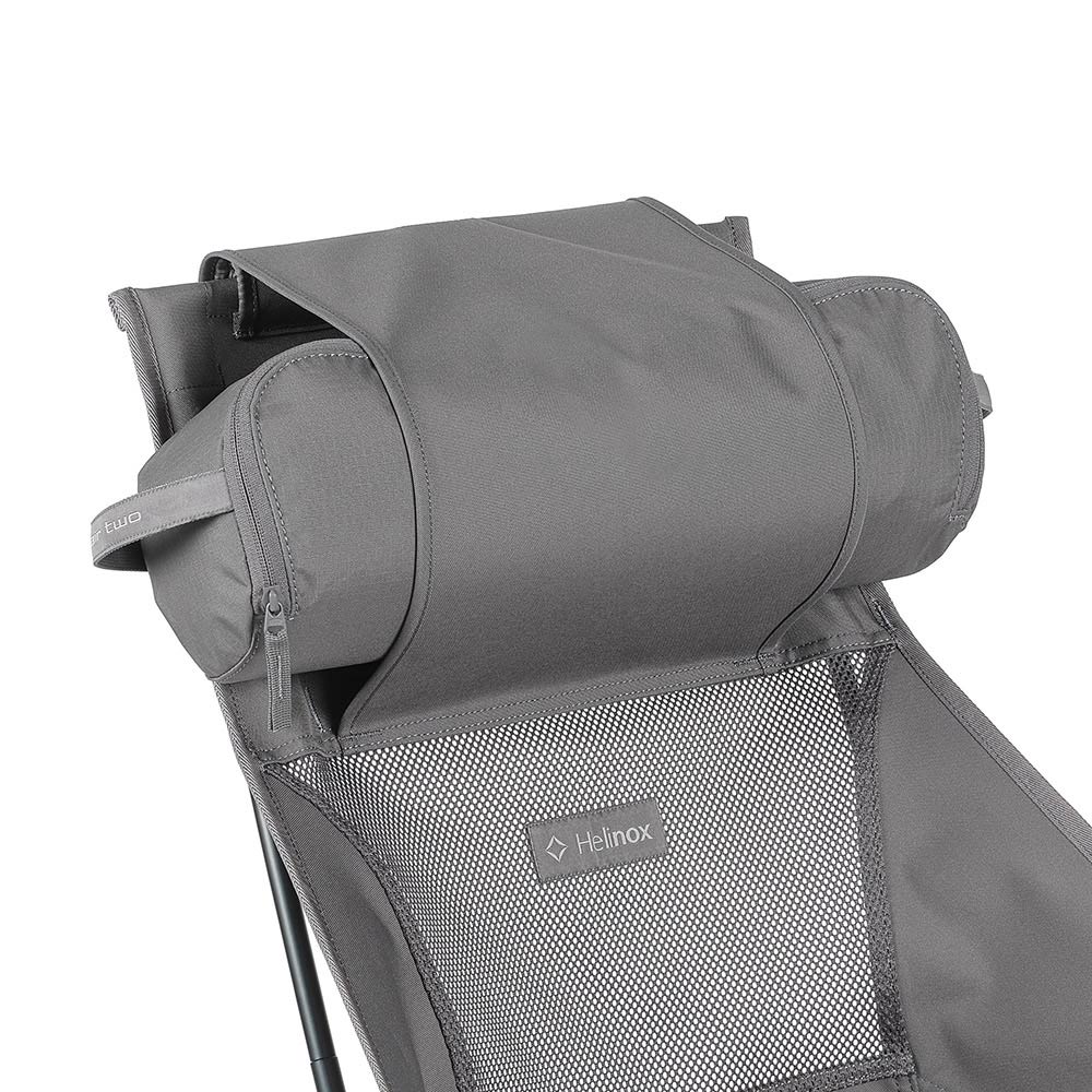 別売りの「ロッキングフット TWO」を取り付ければ、ロッキングチェアに変身します。右側面に小物を入れるポケット付き。付属のスタッフバッグはヘッドレスト部分に装着して枕として使用できます。スタッフバッグ付き。