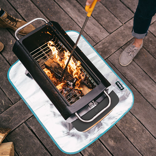 芝生やウッドデッキを熱や火の粉から守るマットです。アルミコーティングを施したファイバーグラス生地で、裏表どちらの面でも使用できます。※ファイアピットは付属しません。