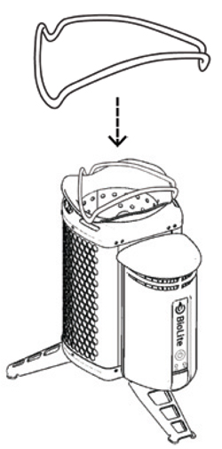 BioLiteキャンプストーブ・クックストーブ専用五徳です。直径9.5cm~11cmの鍋に対応する、小さい鍋を使用するためのアタッチメントです。