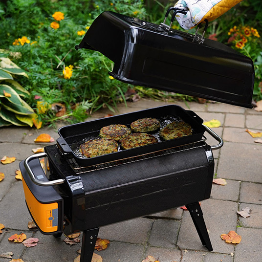 ファイアピットでのオーブン調理を可能にする専用の蓋です。ファイアピット付属のグリルラック(焼き網)と組み合わせて使用するか、別売のファイアピット グリドルと組み合わせることで、調理の幅が広がります。