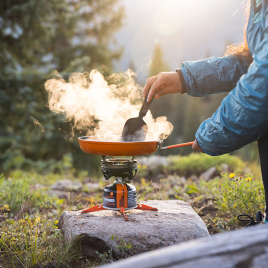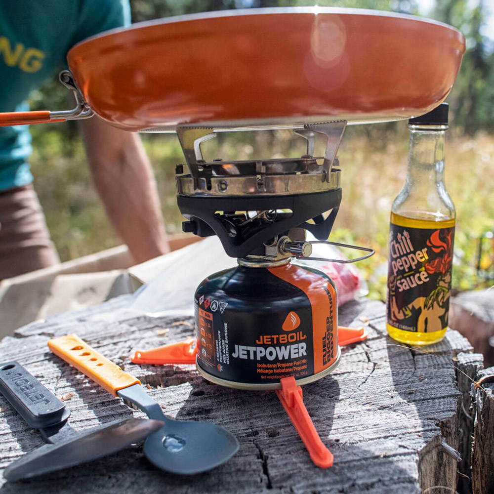 ジェットボイル®クッキングシステム™は、付属のゴトクを使えばオプショナルクッカーやフライパン、異なるメーカーのクッカーも使用することができます。