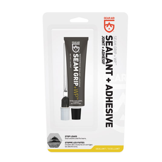 レインウエア、テント、タープ、バックパックなどの縫い目を目止めして防水性を高める接着剤です。熱や寒さの影響を受けにくく、磨耗にも強いため穴あきや破れの補修が長持ちします。液体に近い溶剤で、簡単に薄く伸ばすことができます。生地の穴あき修理にも使えます。1本で約3.6m(平均的な2人用テントの主要な縫い目)を目止め加工できます。本体に取り付ける刷毛と小さなブラシが付属。