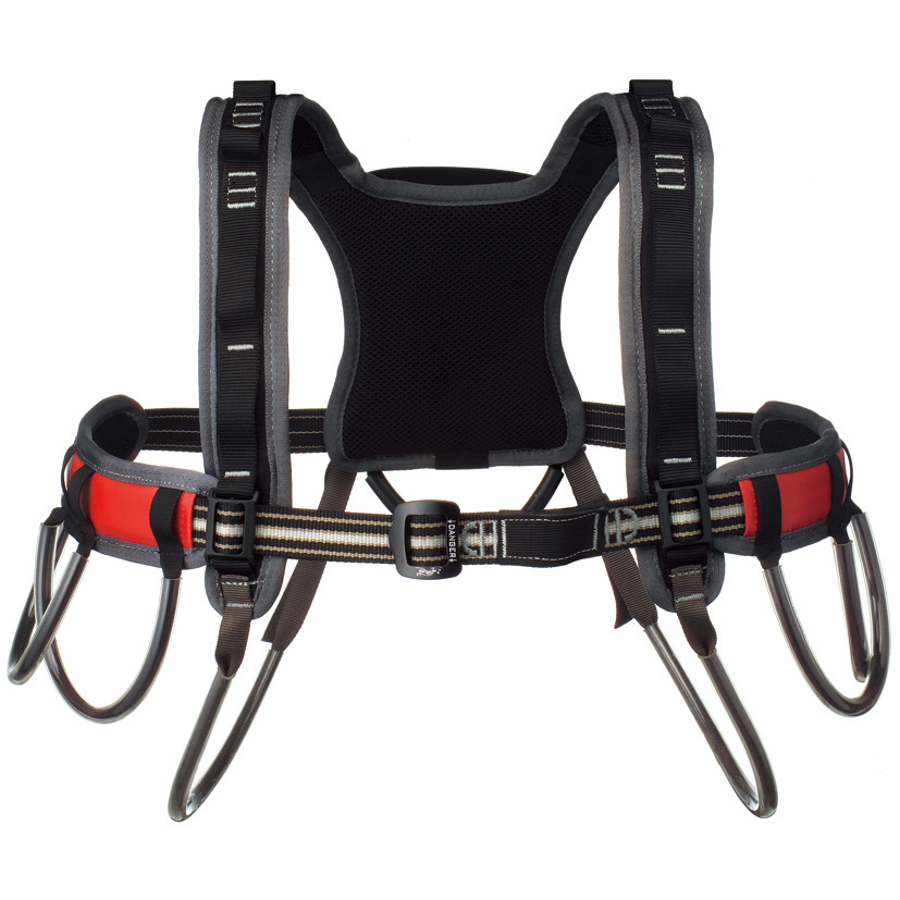 大量のギアを効率よく携帯でき、重量負担を和らげるショルダーハーネスタイプのギアラックです。脇腹のベルトラックは取り外し可能です。ビッグウォール向けモデル。