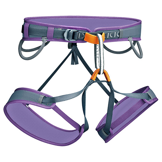 女性や小柄な方向けの軽量スポーツクライミングハーネス。ウェストバンドがズレにくい構造で、高いフィット感を持続します。