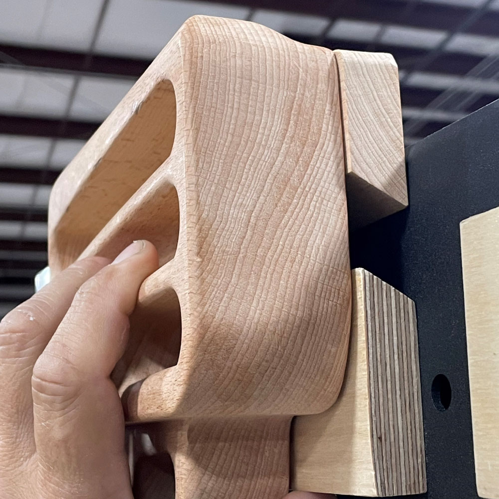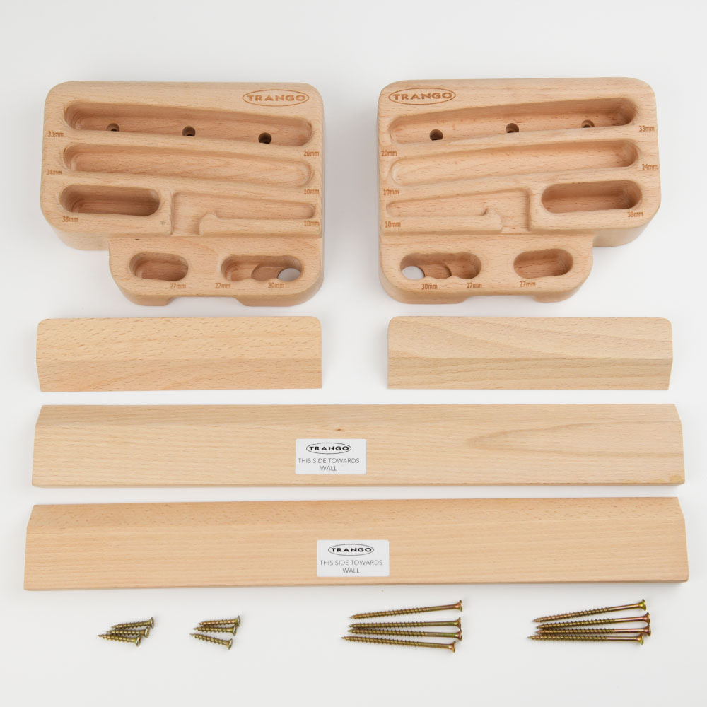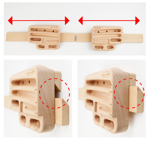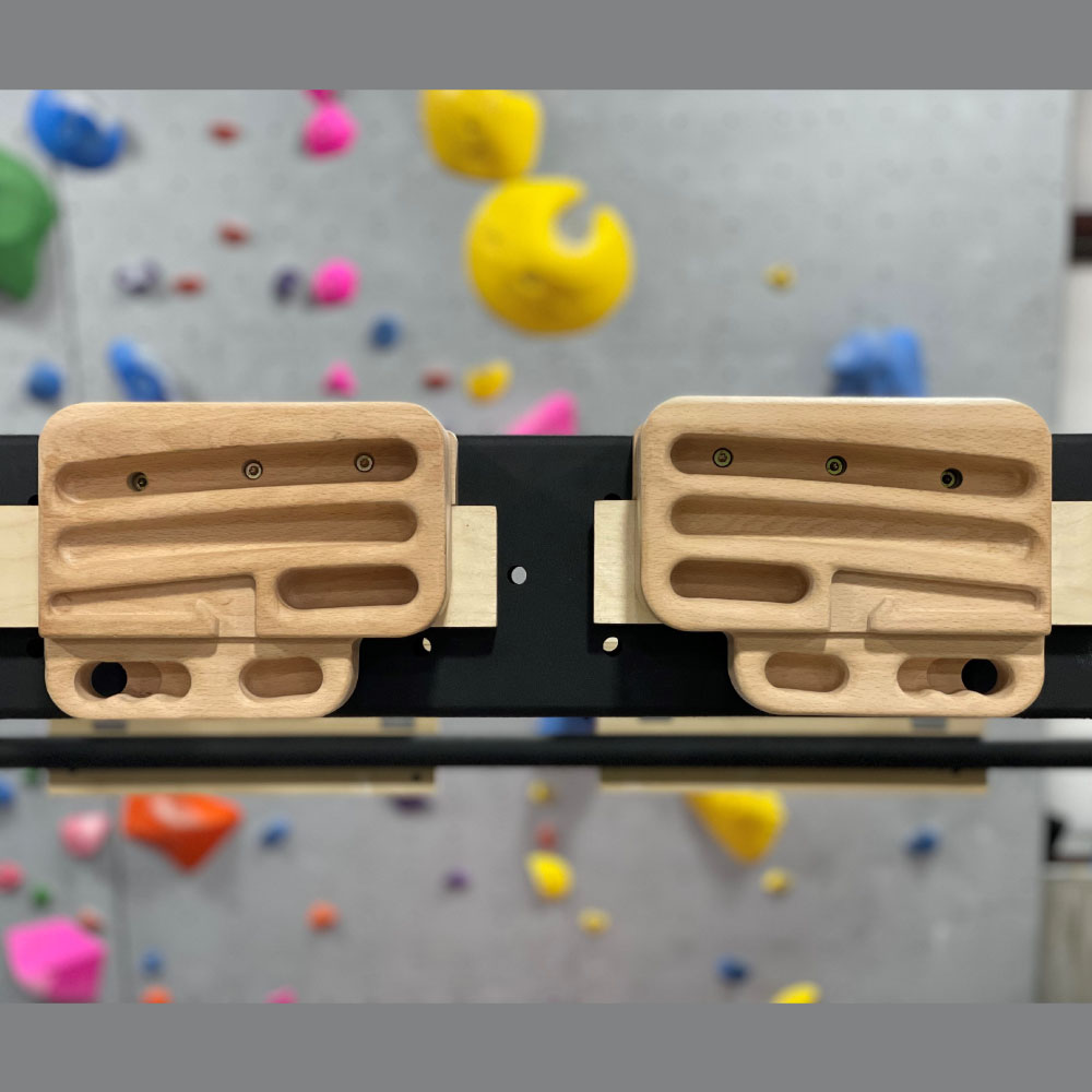 クライミングのパフォーマンス向上の為のトレーニングボードです。ブナ材の自然で優しい質感が摩擦を抑え、指に対する過度な摩耗やダメージを抑えます。レールに引っ掛けて設置する為、容易にボード幅の調整が行えます。