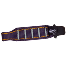 スリングの両端はテーパードデザイン、中間部は25mm幅。カラビナの回転を防ぐタフバンドが付属しています。
