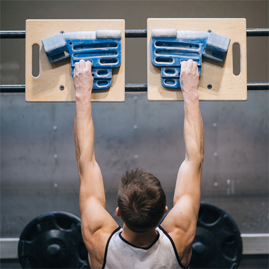室内壁などに取り付けられるトレーニングボード。左右セパレートとなっており、取付時に左右の間隔を任意で調整でき、ピンチなどユニークなホールドも備えています。