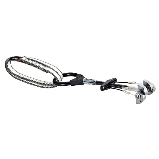 1軸構造により、セット後にカムがずれにくく安定性が高いカムプロテクション。ダイニーマ®製のスリングは2重になっており、延長可能。
