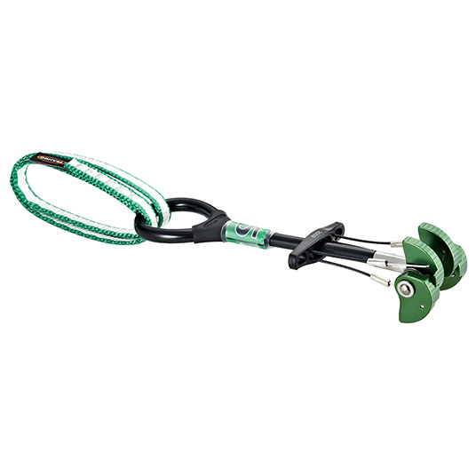 1軸構造により、セット後にカムがずれにくく安定性が高いカムプロテクション。ダイニーマ®製のスリングは2重になっており、延長可能。