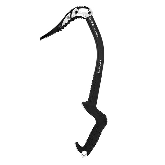 ミックスクライミングやアイスクライミングに適したアイスアックスです。傾斜が強い壁を想定して角度を付けたダブルハンドルはドライツーリングなどの難しいルートで真価を発揮します。耐久性を高めた一体成型のグリップは、握りやすく腕の疲労を軽減。アイスピックを標準装備。ミックスクライミング用のピックは別売りで用意しています。