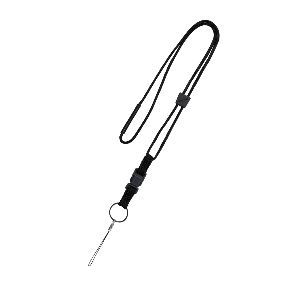 カードなどを首からぶら下げるためのストラップ。金属パーツ不使用で磁気カードなどにも安心。