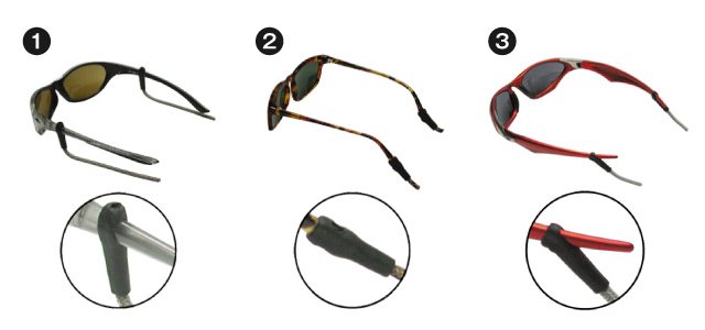 アイウェアのフレーム形状や着用感に合わせて、3通りの取り付けが可能です。