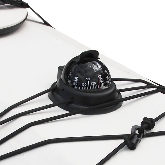 海のツーリングカヤックで、ナビゲーションに必要なデッキコンパスです。視認性に優れ、現在地や進行方向の確認が容易です。