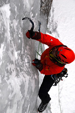 日本のアイスクライミングでは湿雪や流水で靴が濡れる場面もありますが、「アイガーXT EVO GV」はさまざまなパーツの守備力が上がり、足が濡れるようなことはありませんでした。僕は足首程度の簡単な沢はこの靴のまま歩いていますが、同形状の他社品に比べ圧倒的に濡れませんでした。
