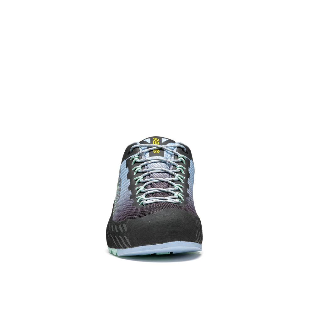 つま先に設けられたクライミングゾーンは岩表面に密着し高いフリクション性能を発揮し、岩場で立ちこむ際に高い安定性を誇ります。また岩場だけではなく不整地の踏破性能を高めるラグパターンや、ブレーキが利きやすいヒール形状も特徴的です。