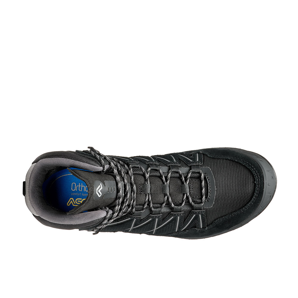 アゾロのオリジナルアウトソール「アゾロクロス」が高いグリップ力を発揮し、泥はけの良いラグパターンは険しい地形に対応します。ソールの形状は、つま先側とかかと側にやや反り上がっており、複雑な路面でも接地、蹴り出しがしやすくなっています。