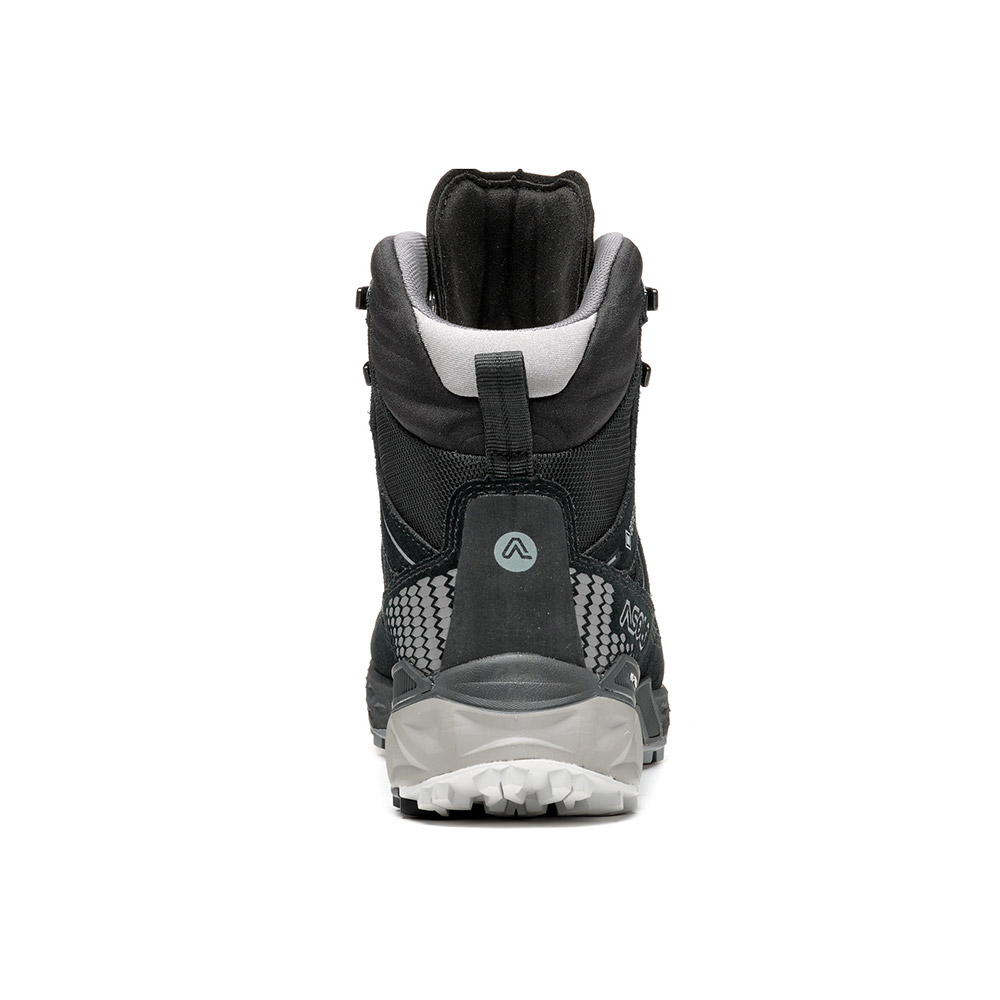 アゾロのオリジナルアウトソール「アゾロクロス」が高いグリップ力を発揮し、泥はけの良いラグパターンは険しい地形に対応します。ソールの形状は、つま先側とかかと側にやや反り上がっており、複雑な路面でも接地、蹴り出しがしやすくなっています。