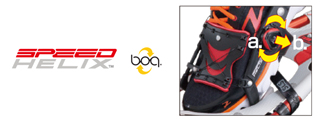ランニングシューズに最適なフィット感を発揮する特別なデザインながら、その他のブーツの形状・サイズにも対応するスライド式アーチループを採用。boaL6ダイヤル式のBoaクロージャーシステム搭載で驚異的な着脱の容易さを発揮します。
