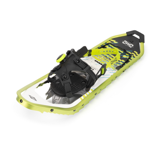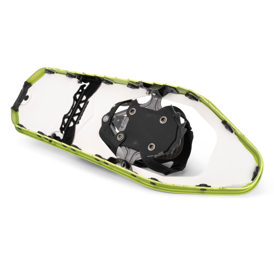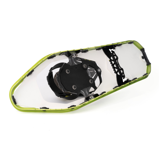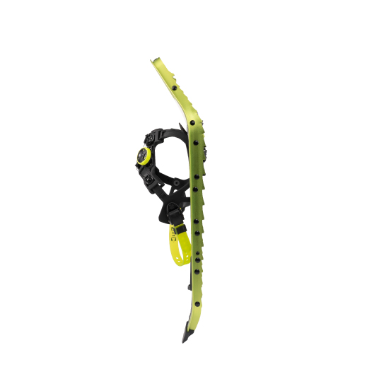 剛性・軽量性・柔軟性が特長のT型アルミフレームを採用したスノーシューです。