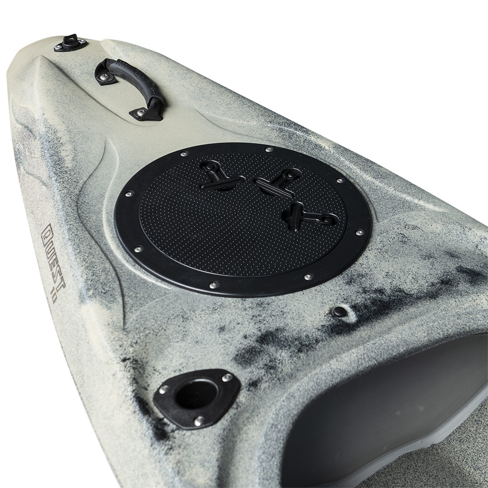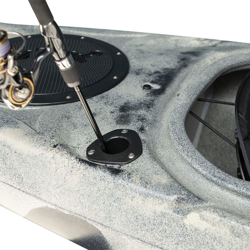 水切性能が高いバウ形状と直進性の高いボトム形状により、短い艇長ながら速度性能も併せ持つモデルです。傾けた際の安定性もあり、穏やかな川であればダウンリバーも楽しめます。シート後方にはフラッシュマウントロッドホルダーを装備し、湖や穏やかな内海でのフィッシングにも対応します。