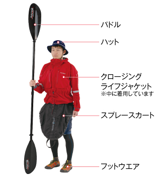 ●ウエアは気温や水温に応じて選択します。シーズンを通して紫外線対策は必須で、帽子やサングラスなどの小物が効果的です。秋から春にかけては低体温症のリスクがあるため、防水性・保温性の高いウエアが必要です。