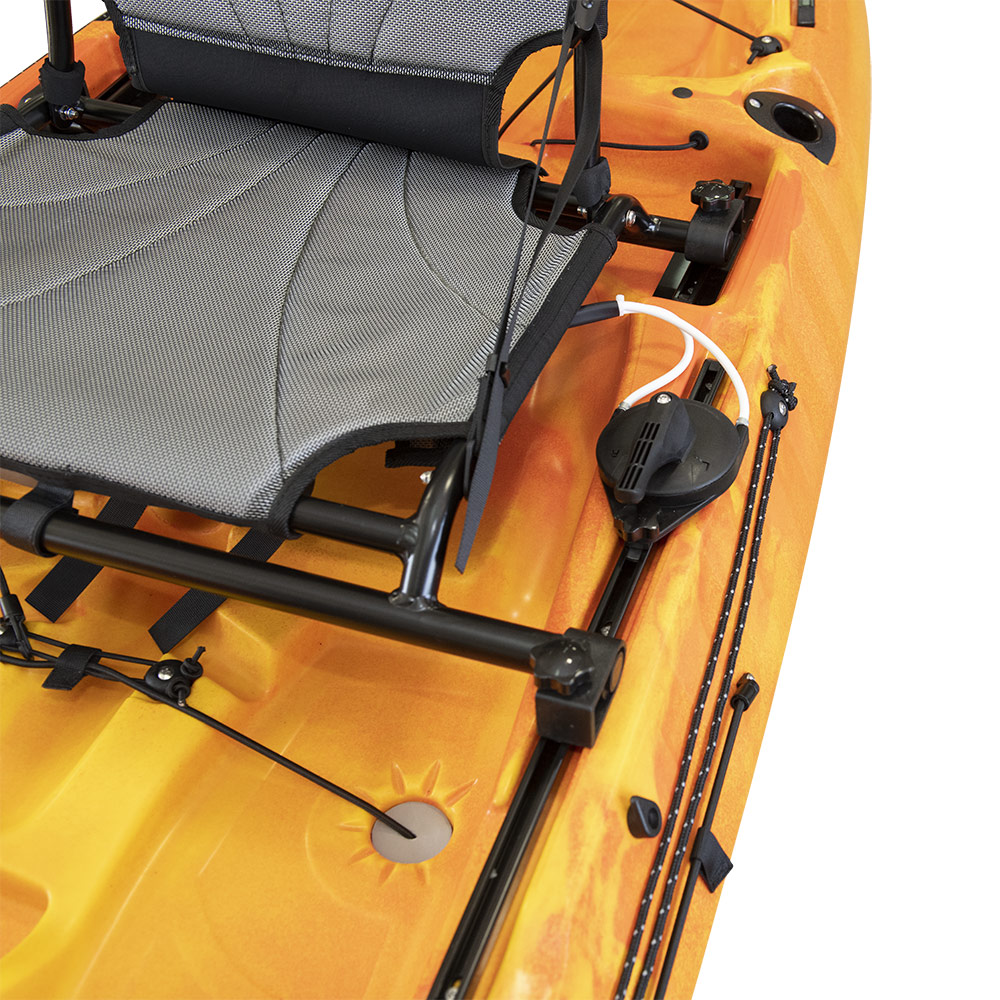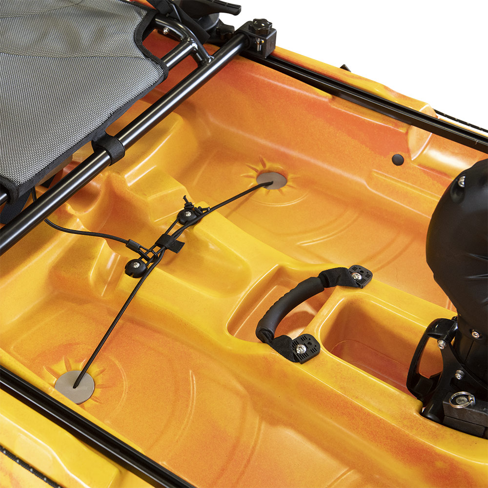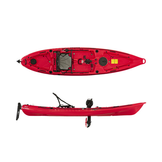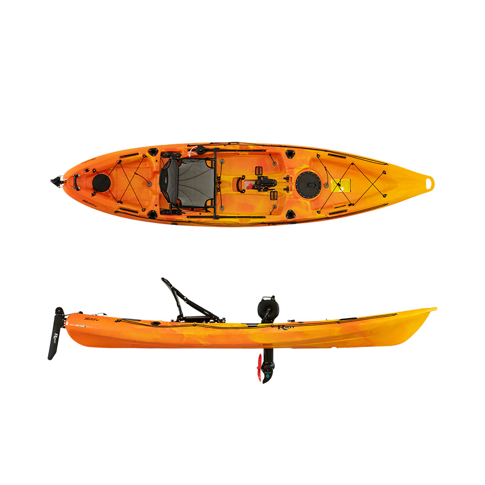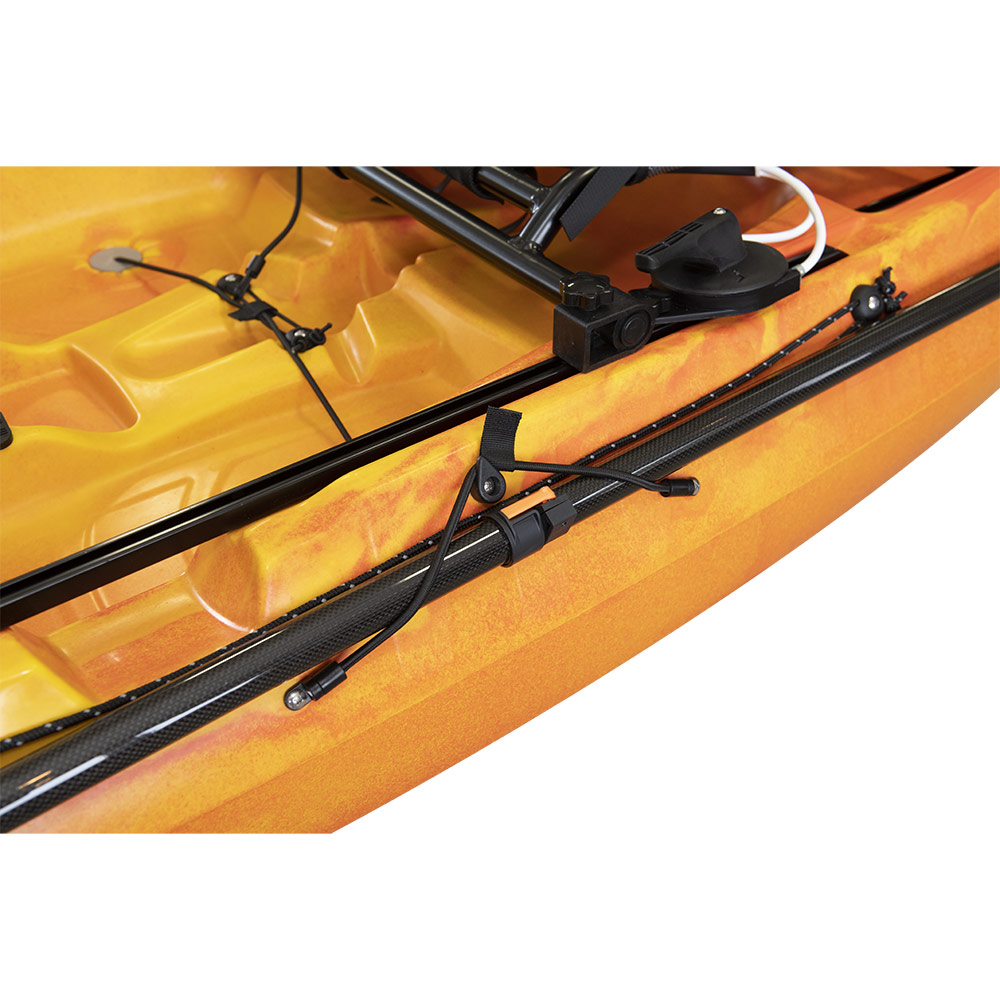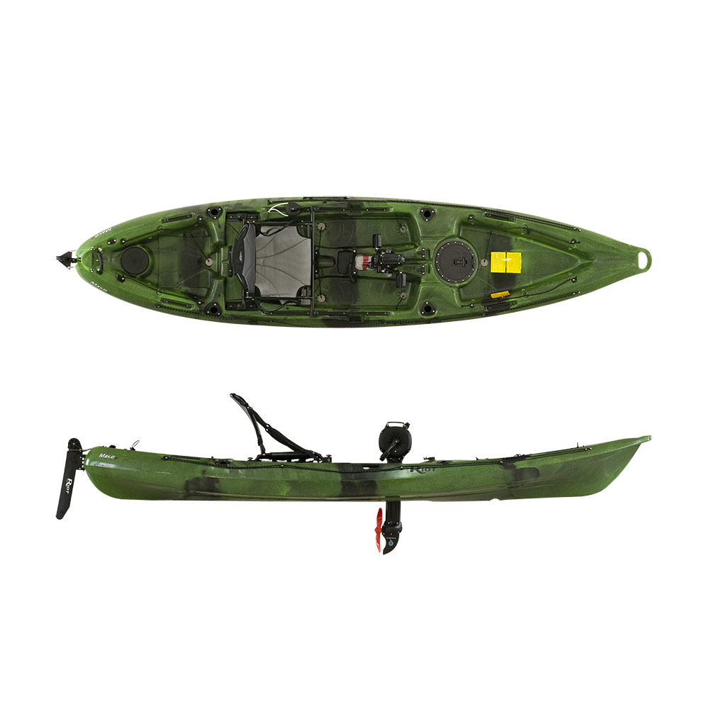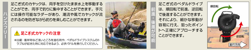 海でのカヤックフィッシングに最適な長さと積載力を持った足こぎカヤックです。波風の影響が少ない条件であれば、時速5km以上の巡航が可能で、ポイント移動も容易です。