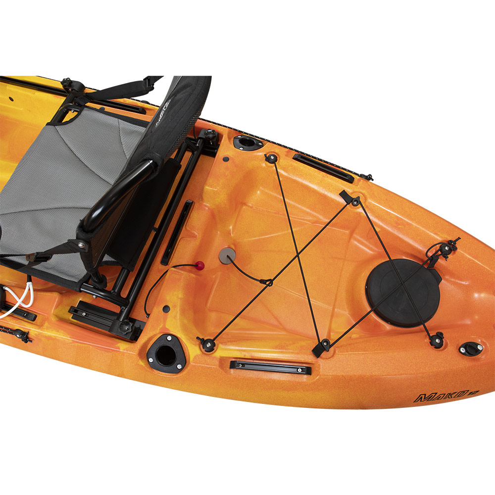 【マコ シリーズ】充実装備と高いコストパフォーマンスで、フィッシングカヤッカーから人気のマコシリーズ。ペダルドライブならではの釣りのしやすさ、航行性能の高さで、ストレスなく釣りに集中できます。取付位置を左右変更可能なラダーコントロールレバー、軽量で注油の必要がない「自己潤滑素材」を採用したドライブユニット、4基の埋め込み式ロッドホルダー、艤装用レールなど装備も充実し、あらゆるフィッシングシーンに対応します。