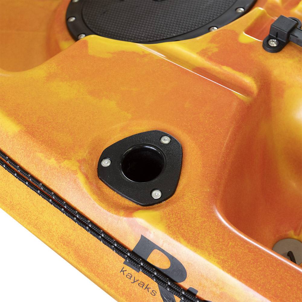 使用時のパドリング動作により船体内部に少量の水が入ることがあります。また、保管時にも雨や結露により水が侵入することがあります。船体内部の水を出すためには、ドレインプラグを開き、カヤックを立てるようにして水を抜いてください。またハッチ(荷室)搭載のモデルについて、完全防水ではありませんので、濡れてはいけない物は必ずドライバッグを使用するなどご注意ください。
