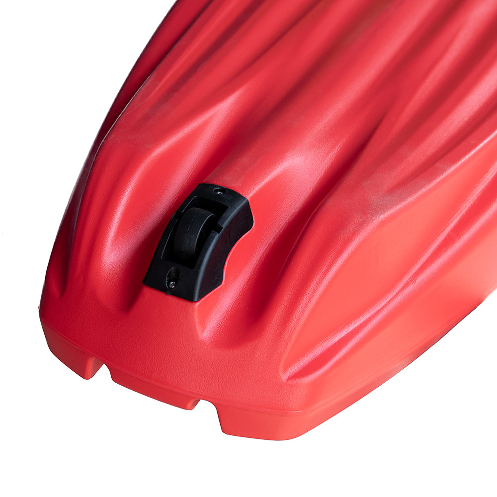 お子さま1人でも持ち運べるよう、船体後端に車輪を装備したキッズ用カヤックです。安定性と漕ぎやすさを備えており、夏の冒険のお供に最適です。キッズ用パドルが付属します。