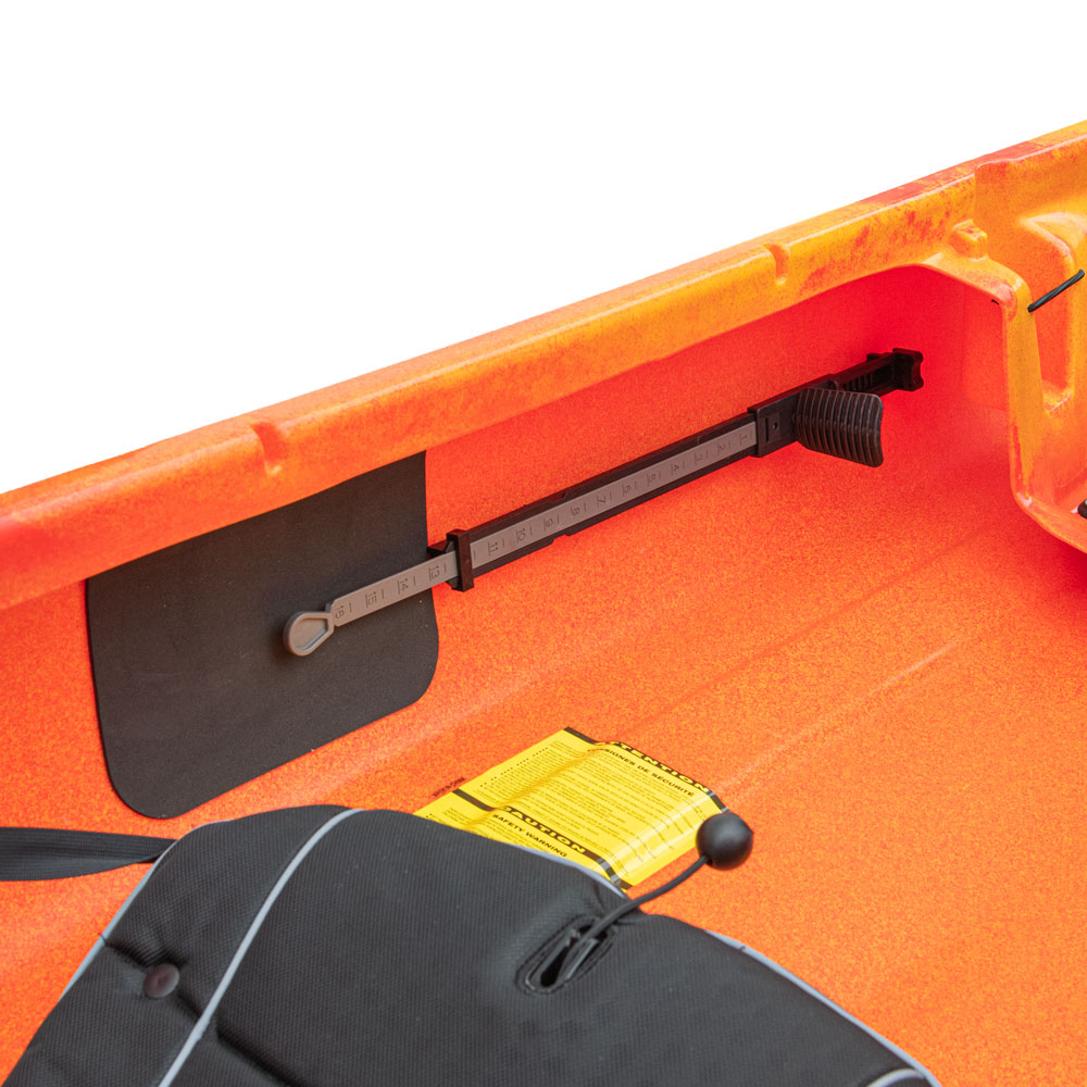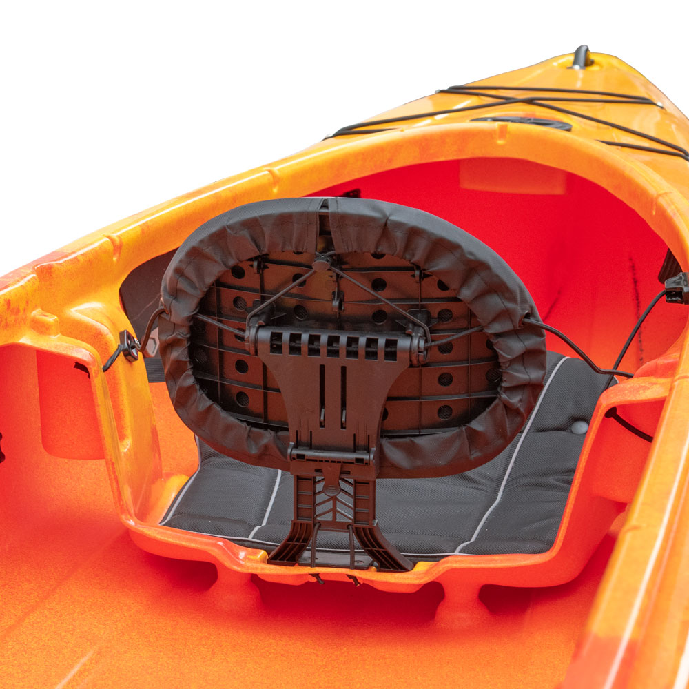 直進性と安定性に優れ、高速クルージングが可能なレクリエーショナルカヤックです。艇の前後に大きな収納スペースがあるため、キャンプ道具を積載しツーリングなどを楽しむことができます。シートにはしっかりしたパッドにレッグリフターを備え、細かい調整が可能なフットブレイスと相まって、安定したパドリングを可能にします。ギアトラックレールを標準装備しており、フィッシングパーツを取り付けることが可能です。