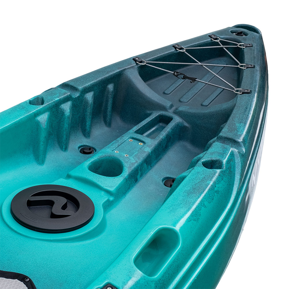 コンパクトな形状で取り回しに優れたモデルです。全長が抑えられており、車への積み上げはもちろん、大きな車であれば車内への積み込みも容易です。巡航性と重量に配慮しながら幅をしっかり持たせることで高い安定性を実現しています。気軽に水辺を楽しむことが出来る一艇です。モールド式のロッドホルダー(4基)を備えています。