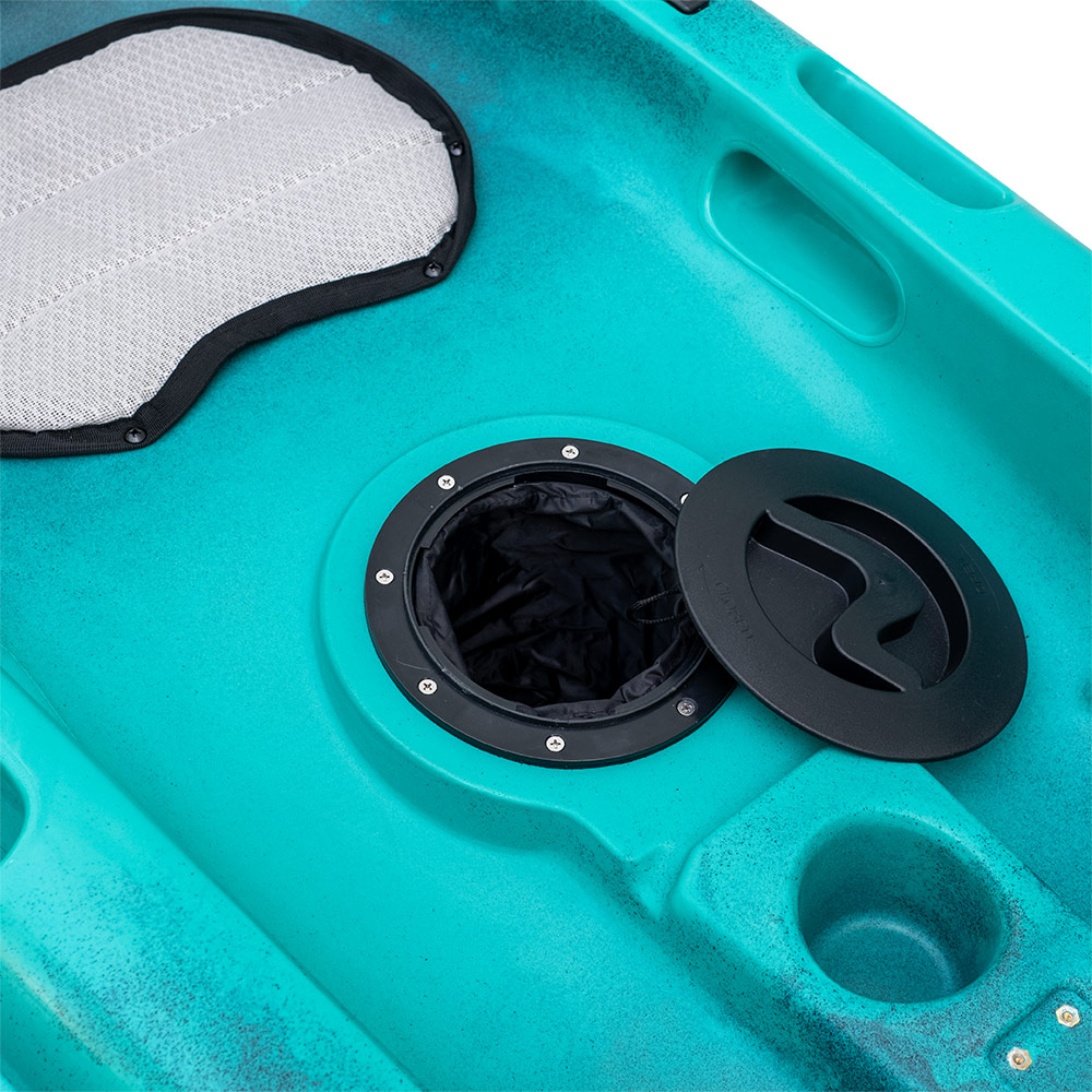 使用時のパドリング動作により船体内部に少量の水が入ることがあります。また、保管時にも雨や結露により水が侵入することがあります。船体内部の水を出すためには、ドレインプラグを開き、カヤックを立てるようにして水を抜いてください。またハッチ(荷室)搭載のモデルについて、完全防水ではありませんので、濡れてはいけない物は必ずドライバッグを使用するなどご注意ください。