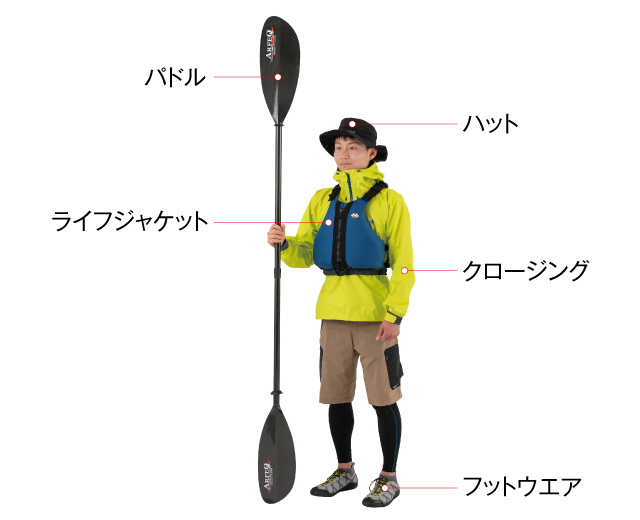 ●ウエアは気温や水温に応じて選択します。シーズンを通して紫外線対策は必須で、帽子やサングラスなどの小物が効果的です。秋から春にかけては低体温症のリスクがあるため、防水性・保温性の高いウエアが必要です。