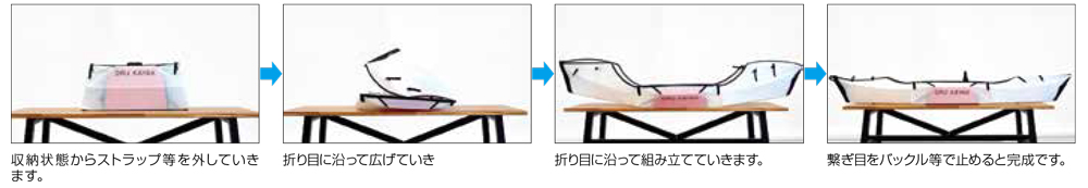 折り畳まれた1枚の ポリプロピレン製シートを広げて組み立てるという、まったく新しい発想をもたらしたカヤックブランドです。発想は日本の折り紙から。 “折る”カヤックなので、ブランド名は「ORU KAYAK」となりました。折り紙のように、山折りと谷折りで組み立てる、フレームを必要としない、新発想のフォールディングカヤックです。